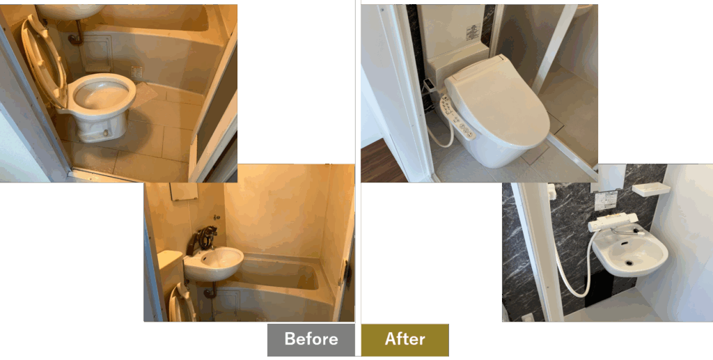 既存の3点ユニットは、トイレと浴室が一体となっているため、衛生面で不安を感じる入居者も多く、物件の魅力を損なう要因となっていました。さらに、賃貸検索サイトでは「バストイレ別」として掲載できないため、検索条件から外れてしまい、入居者募集に不利になるケースも少なくありませんでした。